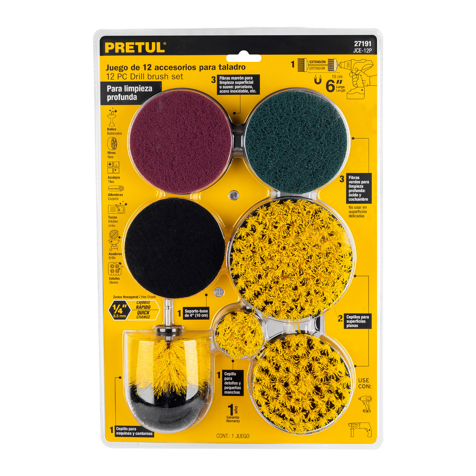 Juego 12 accesorios de limpieza y asentado p/taladro, Pretul