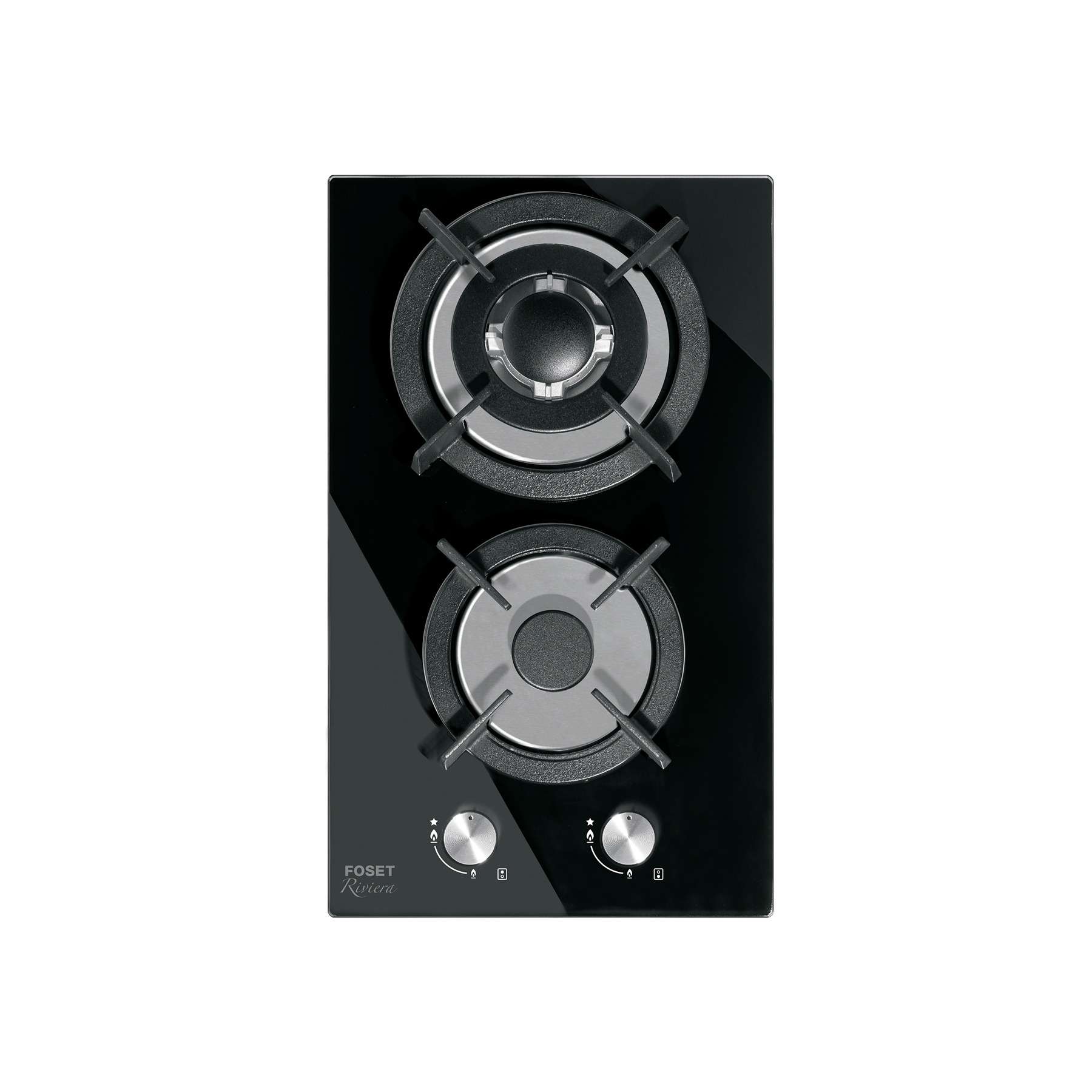 Parrilla gas empotrable 30cm, 2 quem, vidrio negro, Riviera
