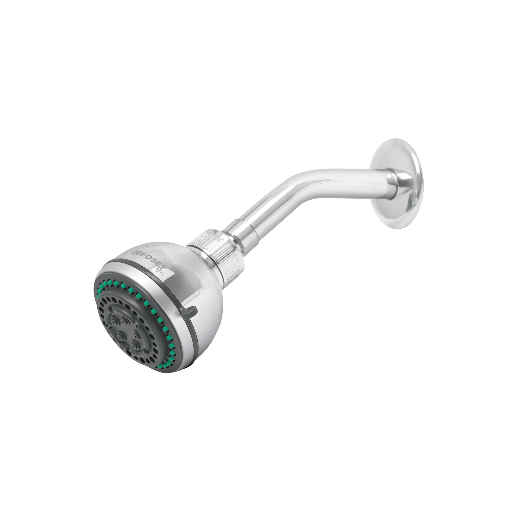 Regadera 3″, 5 funciones brazo y chapetón de acero, Foset